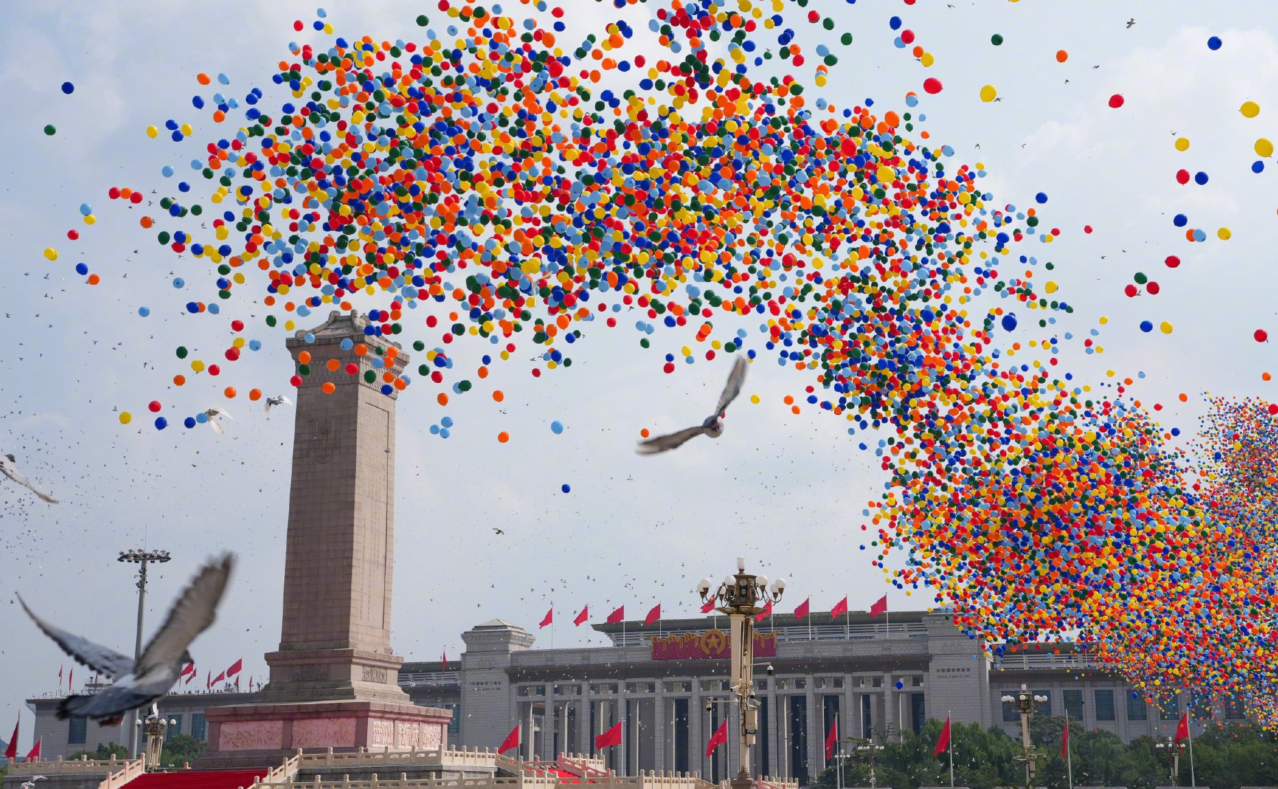 군부대 사열과 분열이 끝난 뒤 톈안먼 광장에서 8만 마리의 평화 비둘기가 날아 오르자 일반 관람객등이 오성홍기 등을 흔들며 환호하고 시 주석 역시 박수를 쳤습니다. 10시 28분 전승절 80주년 기념식이 모두 끝난 것이 선언되자 형형 색색의 풍선 8만개가 하늘로 날아오르는 장관을 연출하기도 했죠. 이러한 모습은 중국이 '세계 평화를 위한 행사'로 이번 열병식을 홍보하고자 했다는 의도가 분명히 엿보였습니다. 보병부대 분열 도중엔 유엔 평화유지군이 사용하는 하늘색 베레모를 착용한 부대가 등장하기도 했었구요.