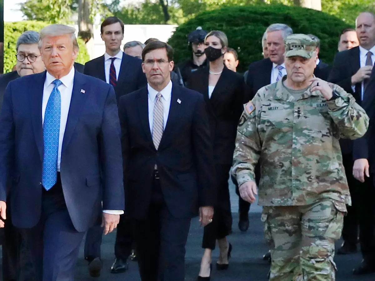 트럼프 행정부 1기 당시 군 수뇌부가 '정치적 이벤트'에 참석했다가 거센 논란에 휩싸인 적이 있다는 점 역시 지휘관들의 신중한 태도에 영향을 줬다는 분석이 나오고 있습니다. 2020년 마크 밀리 당시 합참의장이 흑인 조지 플로이드 사망 사건으로 촉발된 시위 진압에 군을 동원하겠다는 트럼프 대통령의 선언과 관련한 행사에 전투복 차림으로 참석했다가 커다란 반발에 직면한 뒤 공개 사과한 적이 있죠. 행사에 앞서 이미 국방부 고위 지도부에서는 지휘관들에게 현장에서 반응을 보이거나 환호하지 말라는 지침을 내린 것으로 알려졌습니다.